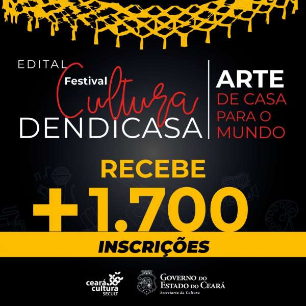 Com inscrições encerradas na última sexta-feira, 10/4, o Edital Festival Cultura DendiCasa, realizado pelo Governo do Estado do Ceará, por meio da Secretaria da Cultura (Secult), recebeu mais de 1.700 propostas oriundas de todo Estado. Selecionando 400 projetos, o Edital é uma ação que visa amenizar o impacto social e econômico do novo Coronavírus nas vidas e na programação de grupos e artistas. Os projetos com conteúdos artísticos selecionados irão compor uma programação especial de difusão em plataformas digitais e meios de comunicação diversos. O edital conta com investimento do Fundo Estadual de Cultura (FEC) de R$ 1 milhão.
