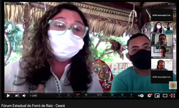 O Forró como patrimônio cultural nacional. Essa é a pauta principal do Fórum de Forró de Raiz, que realiza on-line, o 1º Fórum Estadual de Forró de Raiz do Ceará. A abertura do evento aconteceu na tarde desta sexta-feira, 19/3, com a presença do secretário da Cultura do Ceará, Fabiano Piúba; da diretora da Vila da Música Dane de Jade; do gestor público, consultor em políticas culturais e integrante da comissão organizadora do fórum, Américo Córdula; e da coordenadora do fórum e gestora da Associação Cultural Balaio Nordeste, Joana Alves. A programação acontece no canal do Youtube da Balaio Nordeste, realizadora do evento em parceria com a Vila da Música e a Secretaria da Cultura do Estado do Ceará (Secult), em articulação com o Escritório Regional da Secult no Cariri. A abertura do 1º Fórum Estadual de Forró de Raiz do Ceará foi um momento oportuno para iniciar o debate do forró como patrimônio cultural nacional. Mesas temáticas e apresentações como a do trio Flor do Pequi na abertura (formado por Adriano Aniceto, Fábio Eugênio e Cícero), marcam a programação do evento que segue até amanhã (20/3), totalmente online.