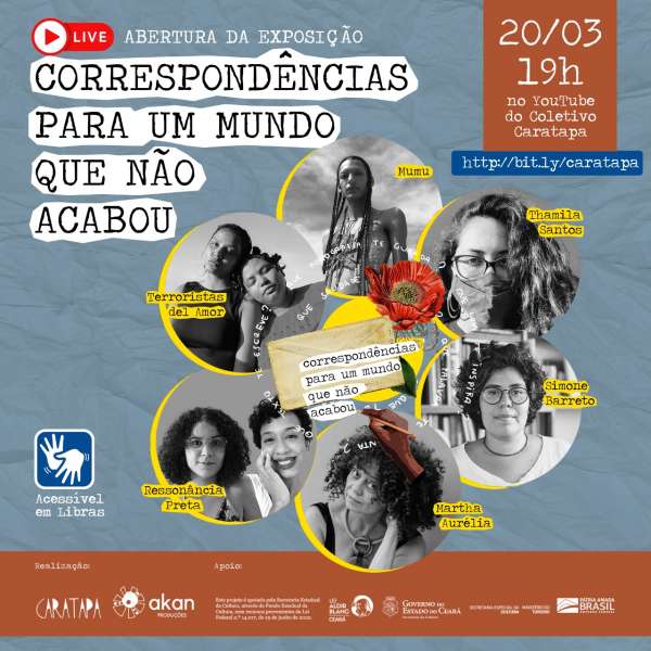 Circuito artístico realizado por mulheres do Ceará traz sete obras que têm como fio curatorial as sensações, modos de vida e suas estratégias em meio à pandemia. Uma carta escrita pelo coletivo Caratapa inicia o percurso de correspondências que reúne seis artistas contemporâneas cearenses. Uma live-performance de lançamento das partilhas resultadas deste processo acontecerá no dia 20 de março, às 20h no site da web-exposição/experiência “Correspondências para um Mundo que Não Acabou”.