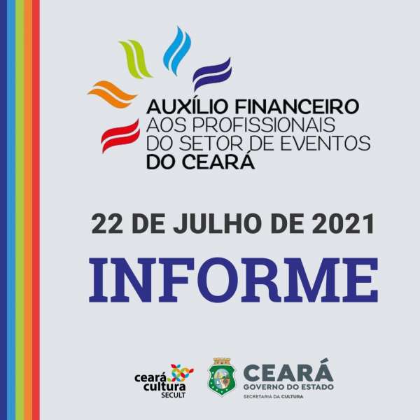 A Secretaria da Cultura do Estado do Ceará (Secult-CE) informa sobre o pagamento da 1ª e da 2ª parcela do Auxílio Financeiro aos Trabalhadores e Trabalhadoras do Setor de Eventos.