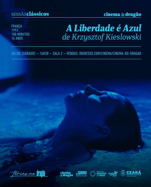 Equipamento do Centro Dragão do Mar de Arte e Cultura, complexo cultural da Secretaria da Cultura do Estado do Ceará (Secult) gerido em parceria com o Instituto Dragão do Mar, o Cinema do Dragão realizará, no próximo sábado (24), a primeira edição presencial da sua “Sessão Clássicos”, programa recém-lançado para a difusão de filmes que são destaque na cinematografia nacional e internacional. Em sessão única, com início às 16h30, na sala 2 do Cinema do Dragão, o público poderá conferir “A Liberdade é Azul”, em cópia digitalmente restaurada, o primeiro filme da trilogia das cores do realizador polonês Krzysztof Kieślowski. Os ingressos custam R$ 16 (inteira) e R$ 8 (meia) e poderão ser adquiridos na bilheteria física do Cinema e no site Ingresso.Com (ingresso.com/cinema/cinema-do-dragao).