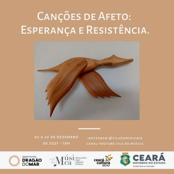 A Vila da Música Monsenhor Ágio Augusto Moreira, equipamento da Secretaria da Cultura do Estado do Ceará /SECULT/CE, gerida em parceria com o Instituto Dragão do Mar /IDM, realiza de 02 a 22 de dezembro, a programação Canções de Afeto: Esperança e Resistência.