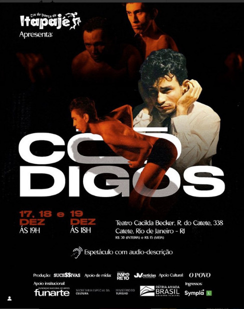 Fundada pelo professor, bailarino e coreógrafo Cleber Alves, com o apoio da Secult itapajeense, a Companhia completa 9 anos na cena artística do interior do Ceará e, em comemoração, realizará pela primeira vez uma turnê fora da região Nordeste. Trata-se do espetáculo “Códigos”, que chega aos palcos do Teatro Cacilda Becker, no Rio de Janeiro, de 17 a 19 de dezembro de 2021.
