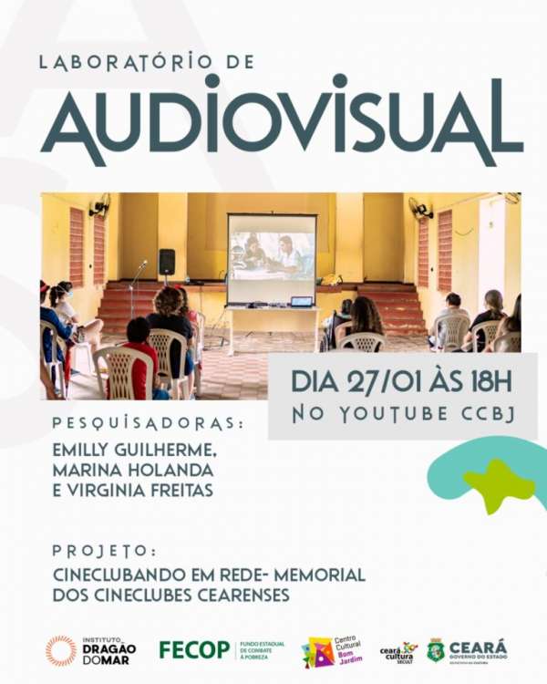 O Centro Cultural Bom Jardim (CCBJ), equipamento pertencente à Secretaria da Cultura do Governo do Ceará (SECULT) e gerido em parceria com o Instituto Dragão do Mar (IDM), por meio da Escola de Cultura e Artes CCBJ apresenta a Partilha dos Laboratórios de Pesquisa 2021, no período de 25 a 28 de janeiro, nos canais do YouTube do CCBJ e da Secult CE.