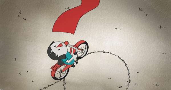 Bicicleta (Animação, 2’15’’, 2018, Livre, Holanda. Dir: Sophie Olga de Jong e Sytske Kok)