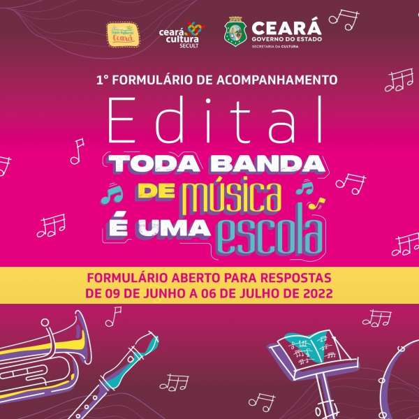 Lançado em 2018, o Edital Toda Banda de Música é uma Escola faz parte da política de ampliação e requalificação da infraestrutura cultural no interior do Estado, e teve como objeto o credenciamento e seleção dos municípios do Estado do Ceará para o devido processo de implantação, ampliação ou modernização de suas bandas de música, atendendo, portanto, a uma das principais demandas levantadas por regentes, instrumentistas, gestores públicos, professores e demais agentes e instituições relacionadas.