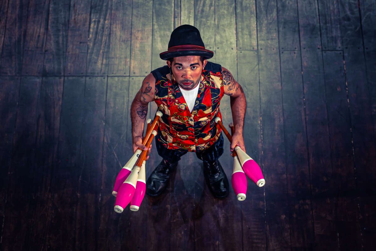 Release: Um espetáculo lúdico de grande interação com o público, que apresenta o malabares no olhar do palhaço popular, este nos leva a uma viagem pela história do malabarismo através da sua mala.