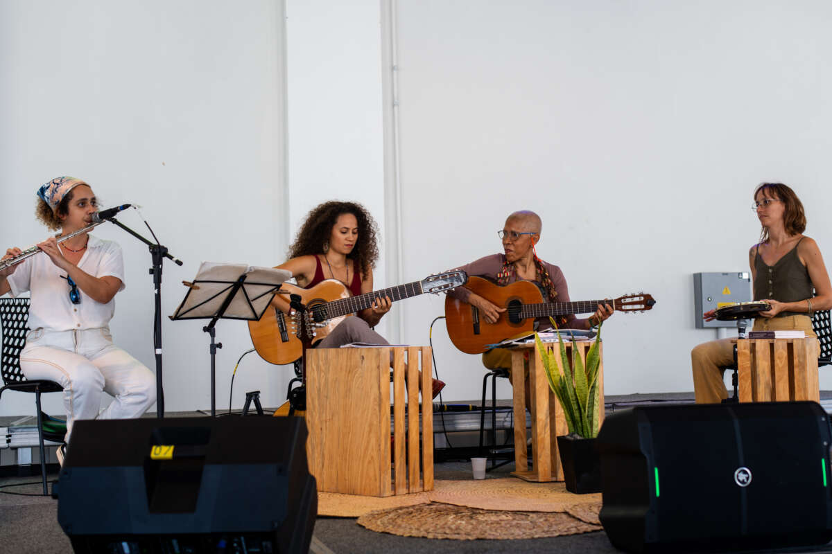 A partir das 12h30, a Estação recebe o show “Chorando Batuques e Chiquinhas”, com o grupo Não Insistas, Rapariga!, que reúne musicistas unidos para estudar e difundir o choro. O repertório apresenta clássicos nacionais, compositores cearenses e obras de compositoras mulheres, das tradicionais às contemporâneas. Em celebração ao Mês da Consciência Negra, o grupo apresenta uma seleção que passeia por grandes nomes da cultura negra com contribuição essencial para o choro e a música brasileira, como Pixinguinha, Joaquim Callado, Paulinho da Viola, Henrique Alves de Mesquita, Tarcísio Sardinha e Baden Powell, além de compositores da nova geração. A formação conta com Maria Gigi Tubiba (violão de 6 cordas), Letícia Marram (violão de 7 cordas), Yanna Torres (violino), Nara Whistler (trompete), Sueli Helena (flauta transversal) e Amanda Nunes (pandeiro e percussão).