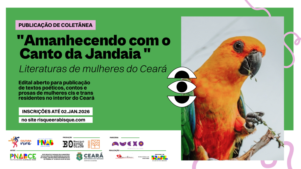 A editora e livraria Risque e Rabisque, sediada em Caucaia, anuncia o lançamento da chamada pública do projeto “Confluências da Palavra”, que abre inscrições para a coletânea Amanhecendo com o Canto da Jandaia – Literaturas de Mulheres do Ceará. A iniciativa integra o eixo literário do projeto e tem como propósito valorizar, reunir e divulgar a escrita de mulheres das diversas regiões interioranas do estado.