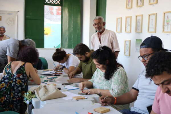 Travessia poético-visual pela xilogravura nordestina, com obras do Tesouro Vivo da Cultura do Ceará e produções de aprendizes.