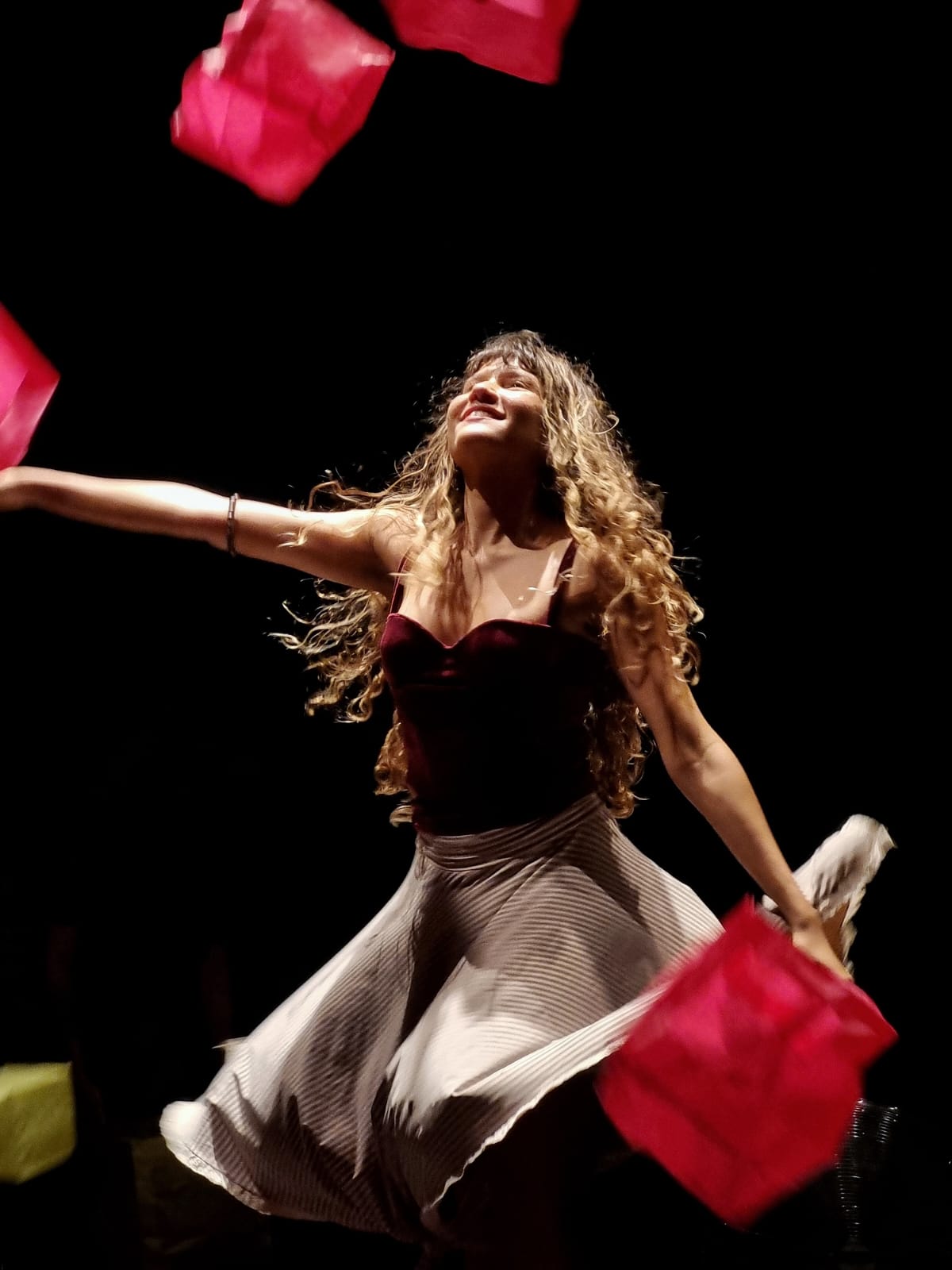 “Como uma obra polissêmica, o espetáculo permite diferentes tipos de acessos, sejam eles mais ou menos intuitivos, sensoriais e/ou reflexivos, mas, sobretudo, permite transitar na camada pura da composição dos elementos. Nele, há especial interesse em produzir antes que uma reflexão racional, uma experiência corporal. Experiência de leveza e beleza. De cor, de sons, de movimento”, explica a artista.