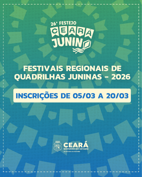 A Secretaria da Cultura do Estado do Ceará (Secult Ceará) iniciou, nesta quarta-feira (5), o período de inscrições para os Festivais Regionais de Quadrilhas Juninas – 2026, ação que integra o Ciclo Ceará Junino, uma das mais importantes políticas públicas de valorização da cultura popular no estado.