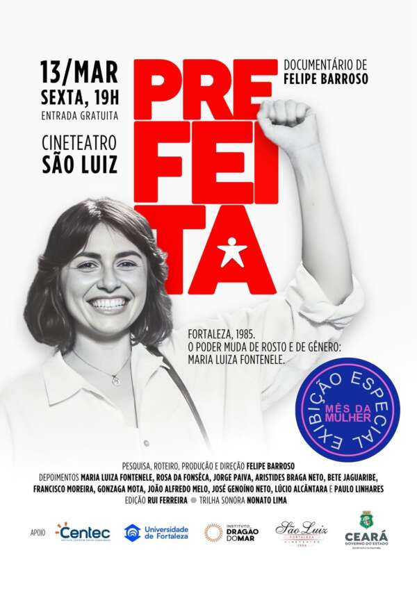 O documentário Prefeita, dirigido por Felipe Barroso, volta à tela do Cineteatro São Luiz, em Fortaleza, nesta sexta, dia 13/março, às 19h. A obra revisita um dos capítulos mais marcantes da história política brasileira: o governo de Maria Luiza Fontenele, primeira mulher eleita prefeita de uma capital do país, que administrou Fortaleza entre 1986 e 1988.