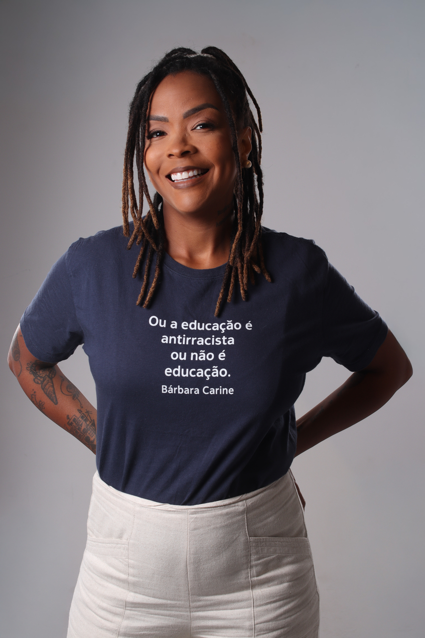 Ao seu lado, participa Bárbara Carine — mãe, mulher negra cis, baiana, professora, escritora, empresária, palestrante e influenciadora conhecida como @uma_intelectual_diferentona. Graduada em Química e Filosofia pela UFBA, é mestra e doutora em Ensino de Química pela UFBA/UEFS e professora da Universidade Federal da Bahia (UFBA). Idealizadora da Escola Maria Felipa, primeira escola afro-brasileira do país, Bárbara é autora do best-seller Como ser um educador antirracista, vencedor do Prêmio Jabuti 2024 na categoria Educação. Sua atuação articula produção acadêmica, escrita e comunicação digital, ampliando o debate sobre raça, educação e transformação social.